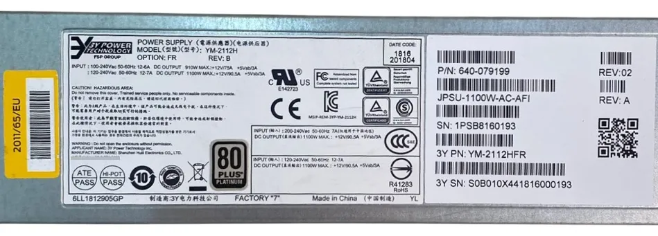 Fonte Switch Juniper 1100W AC 640-079199 JPSU-1100W-AC-AFI YM-2112H @